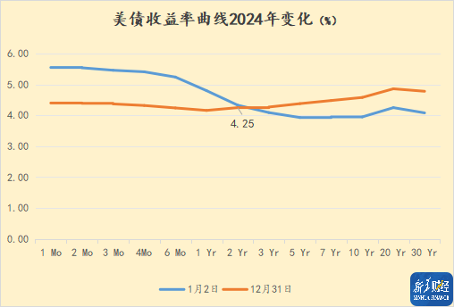 与2025年初相比, 美债收益率曲线年末整体下行(下图),曲线中长段变陡。