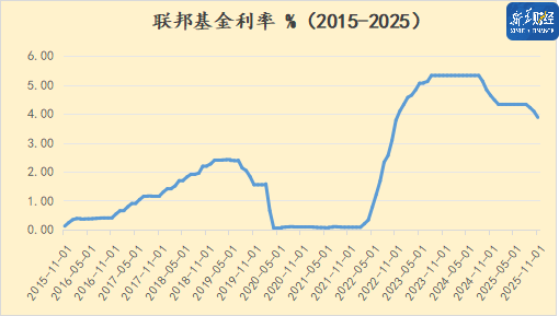 在2025年的最后一次会议上,美联储将利率下调25BPs,至3.50%至3.75%的区间。自2024年9月以来,美联储已经降息175BPs。